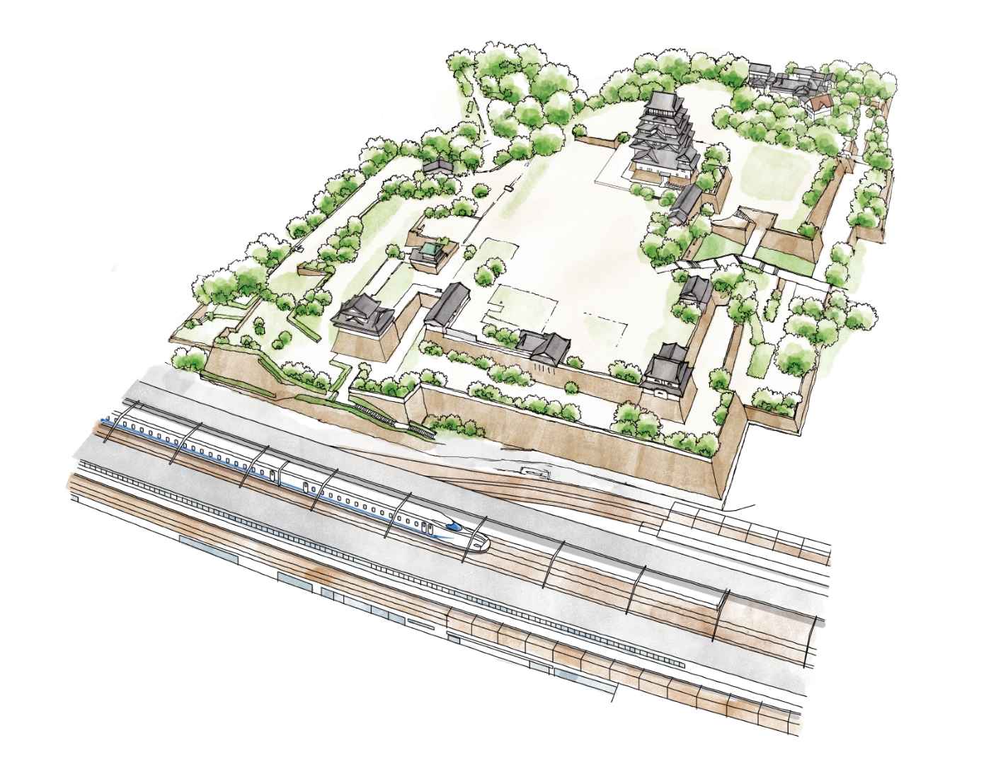 福山城は日本一駅から近く、日本唯一の北側鉄板張りを有する稀有な城です。