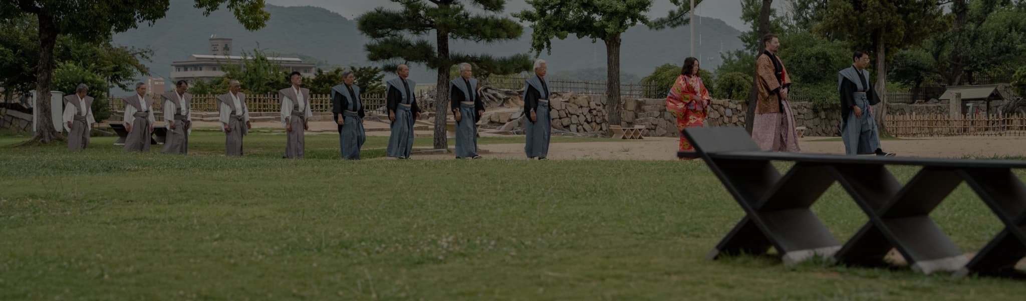 福寿会館で行われるお茶席は、和の美を堪能できる貴重な時間です。 美しい着物に身を包み、軸や花が生けられた席にてお点前を拝見、もしくは体験いただけます。歴史ある日本庭園を眺めながら、心静かに一碗のお茶を味わうひとときは、福山城での滞在にさらなる趣を添えるでしょう。