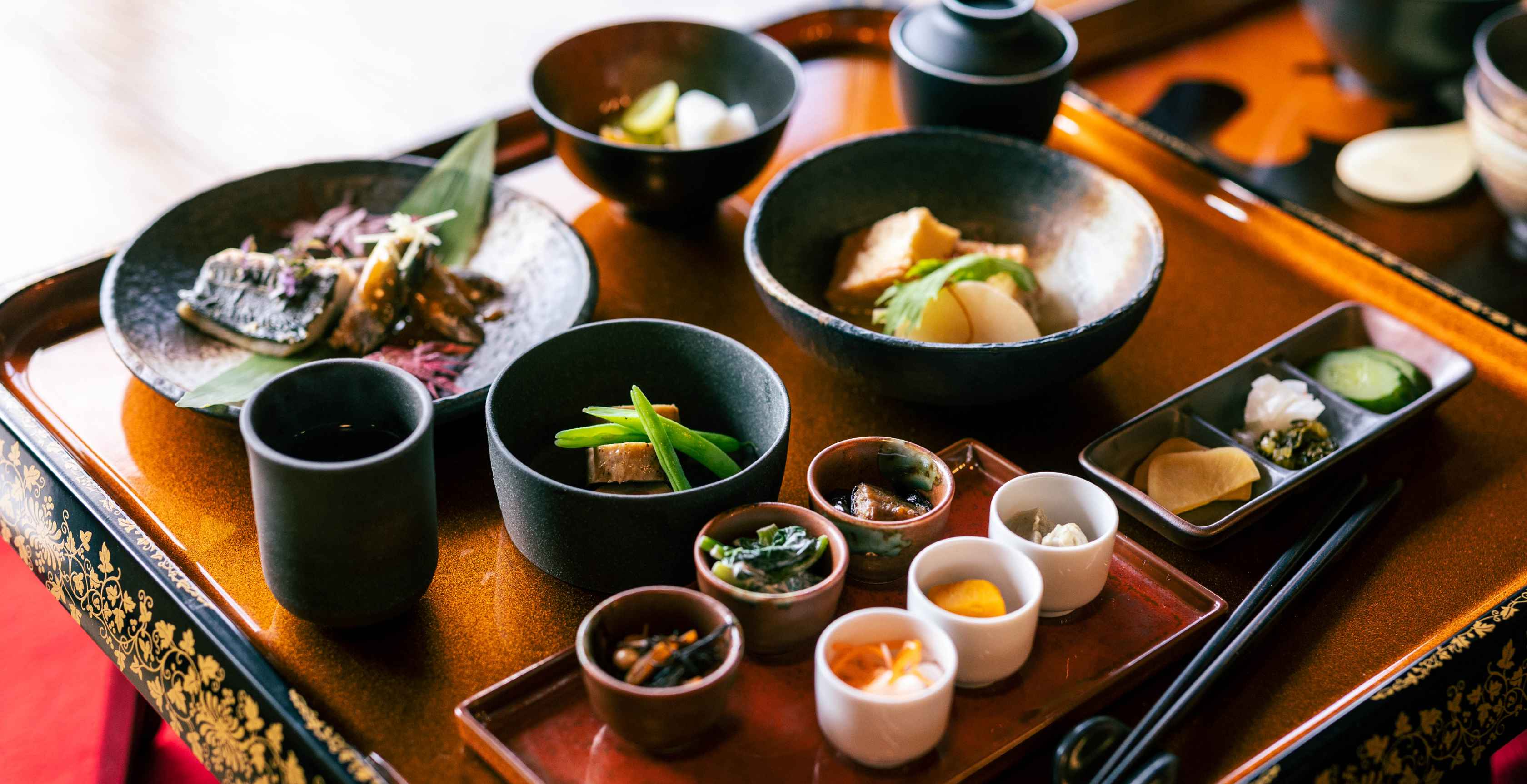 福山城キャッスルステイでのお食事は、福山ならではの美食の粋を凝らした特別なひとときです。瀬戸内海の豊かな海の幸と、地元で育まれた新鮮な山の恵みが織りなす料理は、その日、その瞬間に合わせたおもてなしの逸品としてご提供いたします。地元の食材を熟知したシェフが、歴史ある城主の饗応膳を再現するかのごとく、一品一品に思いを込め、華やかで繊細な味わいをお楽しみいただけるコースをご用意しております。また、国の重要文化財である月見櫓にて、城主の風格を体感しながら味わう贅沢なひとときは、まさにここでしか味わえない貴重な体験です。
