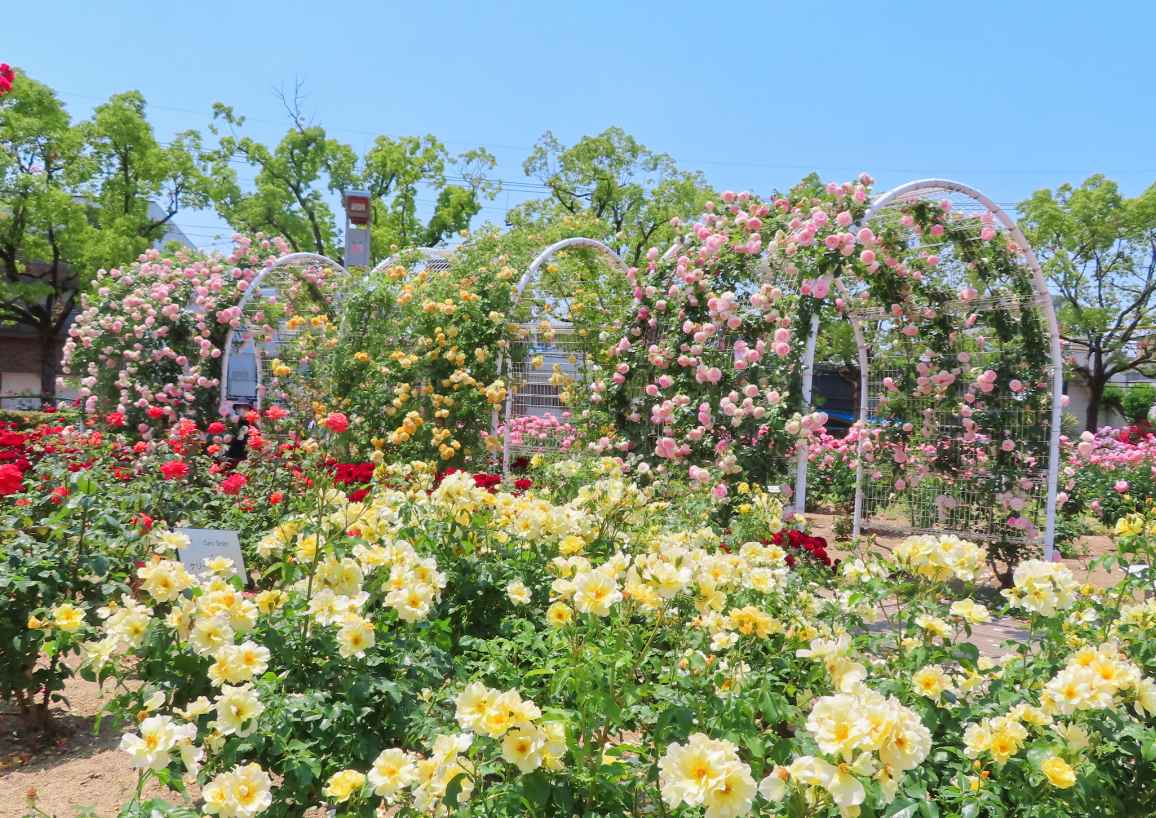春と秋のバラのシーズンには、色とりどりの美しいバラを鑑賞できるほか、毎年5月には「ばら祭」が開催され、多くの観光客が訪れます。