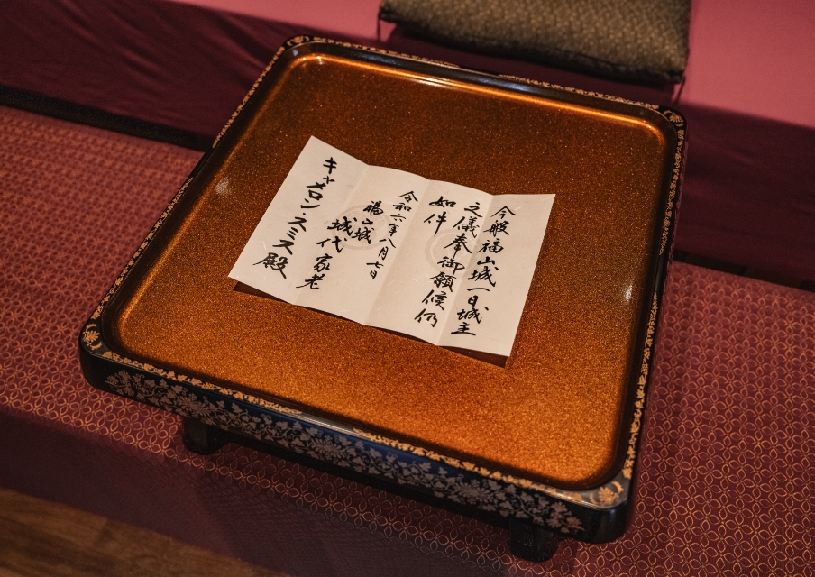 お泊まりいただくお客様に一日城主となっていただき、公園内にある歴史的建造物・文化財や福山市が守り育ててきた無形文化財、伝統芸能などの貴重な資産を存分に楽しんでいただく。福山城キャッスルステイは、そんな福山市が最高峰のおもてなしでお届けする、時を超えた旅。